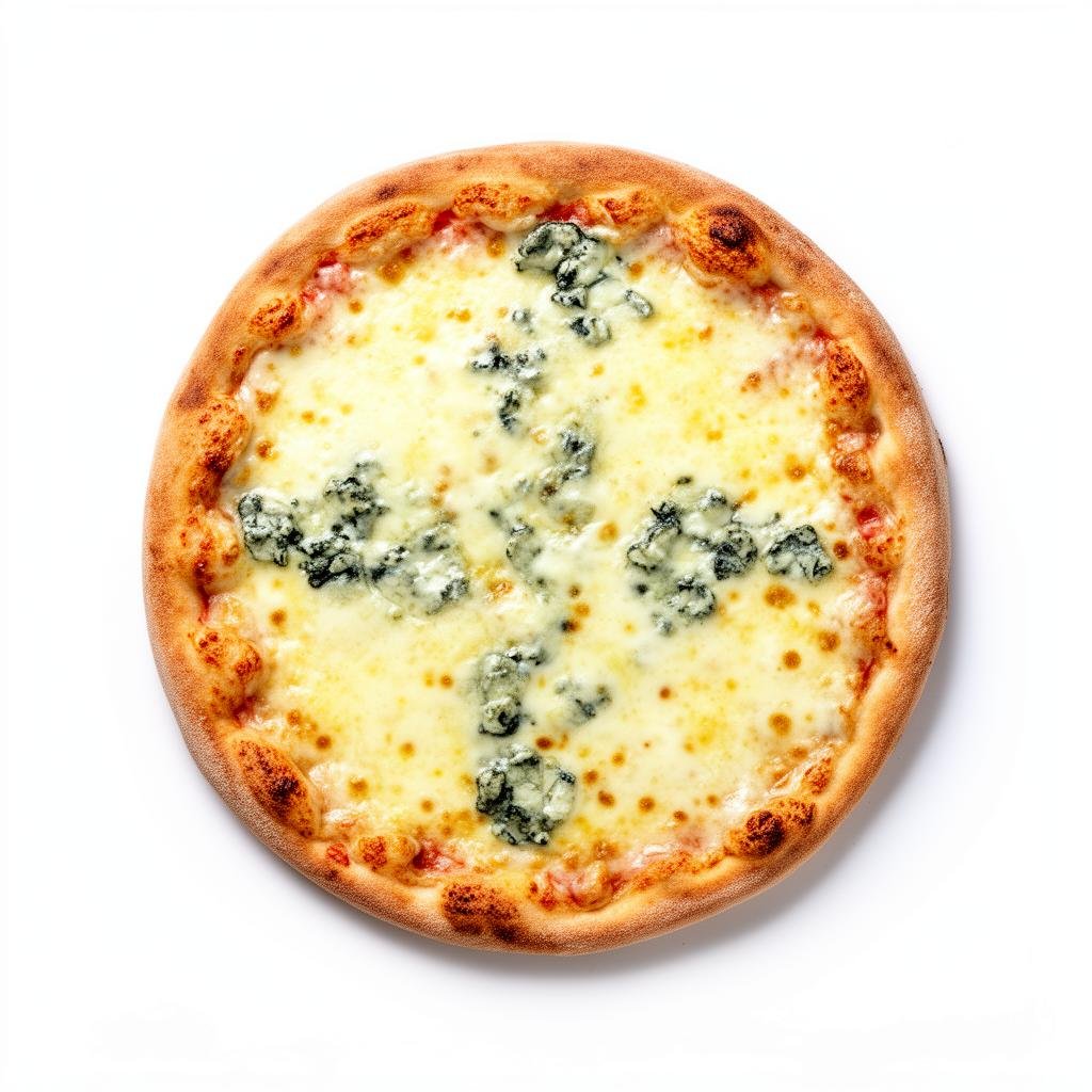 Our Quattro Formaggi Pizza is a cheese lover’s dream. Baked on a perfectly crisp yet soft crust, it features a luscious blend of four premium Italian cheeses: creamy mozzarella, tangy gorgonzola, nutty parmesan, and mild emmental.